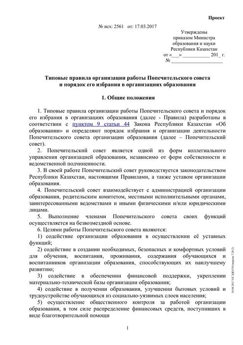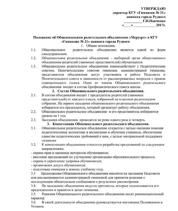 План работы Попечительского Совета